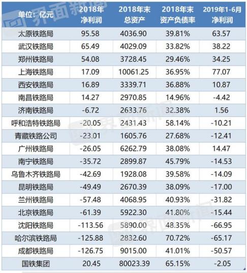 2018年數據顯示,18個鐵路局中有6家實現了盈利,其中盈利第一的是太原鐵路局,實現凈利潤95.58億元,在18個鐵路局中名列第一,比排名第二的武漢鐵路局多賺了30億元,遠超北京局、上海局。