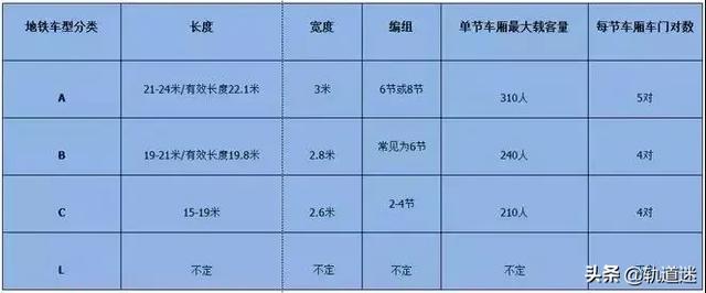 一般而言,世界各地軌道交通車型沒有標準,往往是按照某個地方的地鐵所需量身定制,比如紐約地鐵的A系統和B系統。在我國,城市軌道交通(地鐵、輕軌)車輛類型則往被分為A、B、C三種型號以及L型。