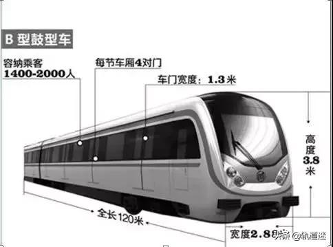 標準B型車車寬2.8米,車體有效長度19.8米,多數為6節編組,少部分4節編組,軸重14t,單向小時最大客運量3-5.5萬。