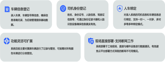 針對傳統(tǒng)車輛管理效率低下、無法實施掌握車輛動態(tài)、人車不匹配等管理難點和風(fēng)險隱患,我司從人、機、門系統(tǒng)性抓實機械設(shè)備出入管理,對現(xiàn)場車輛,尤其是大型機械作業(yè)車輛進行分類安全管理。對出入生產(chǎn)作業(yè)區(qū)的所有黃牌大型機械作業(yè)車輛及司機進行身份核驗,確保事先登記、人車匹配,合規(guī)出入場,有效降低生產(chǎn)作業(yè)區(qū)域的安全管理隱患。